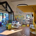 Les jeux de société ne sont pas oubliés et l’on peut même déguster un petit café au bar à l’occasion. Une mezzanine permet un espace tranquille pour diverses animations qui, bien sûr, sont réduites par la crise sanitaire. Un jardin organisé en petits amphithéâtres couronne cette réalisation.