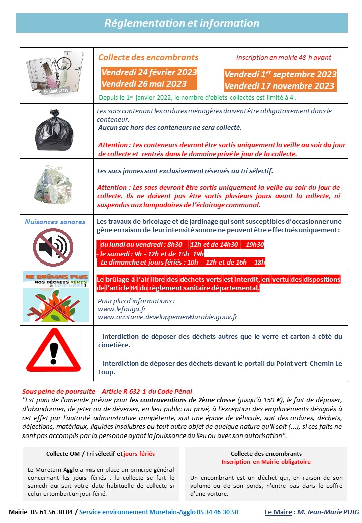 Les déchets suivants sont à amener à la déchetterie de Muret